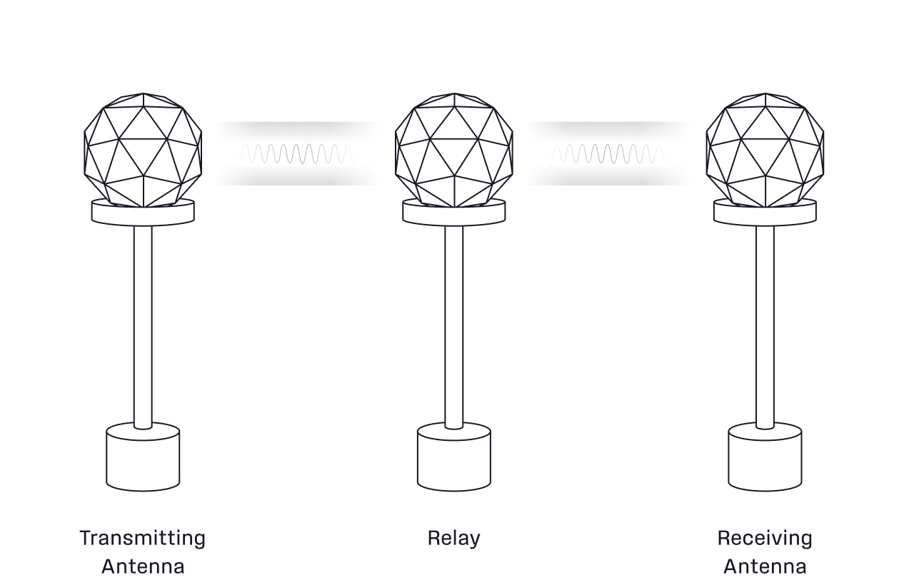 Highly-efficient relays can be placed between the transmitting and receiving antennas.